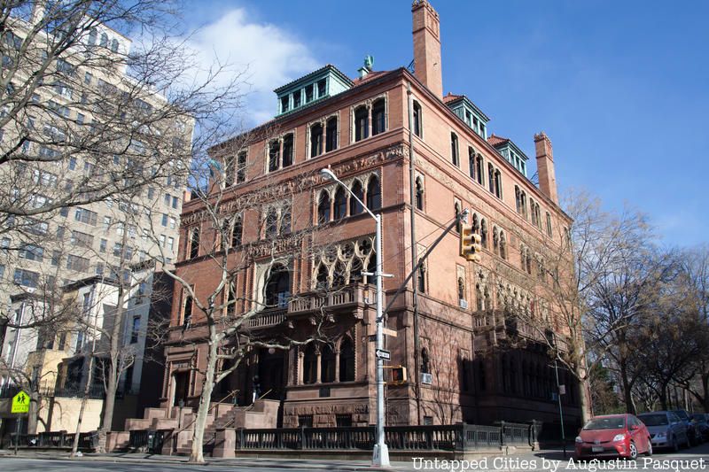 The Montauk Club’s current Park Slope headquarters was designed by architect Frances H. Kimball — famous for his work on the Trinity and U.S. Realty Buildings on Broadway, the Corbin Building next to Fulton Center, and the Emmanuel Baptist Church in Clinton Hill, Brooklyn. Built in 1891 as a Venetian Gothic palazzo, its exterior was inspired by the Ca d’Oro or Palazzo Santa Sofia, located on the Grand Canal in Venice. However, the building also has many touches that harken back to the city’s former Indigenous inhabitants. Upon closer examination, references to the Montauk Indians can be seen on the club’s terra cotta faces and iron fencing around the building can be found displaying Native faces. In 1996, the Club’s basement, third, fourth, and attic stories were converted into condominiums, with residents entering through the original Ladies’ Entrance to the left of the main doors. Today, the Montauk Club retains usage of the parlor and second floor, with a breathtaking balcony overlooking the green canopy of Prospect Park.