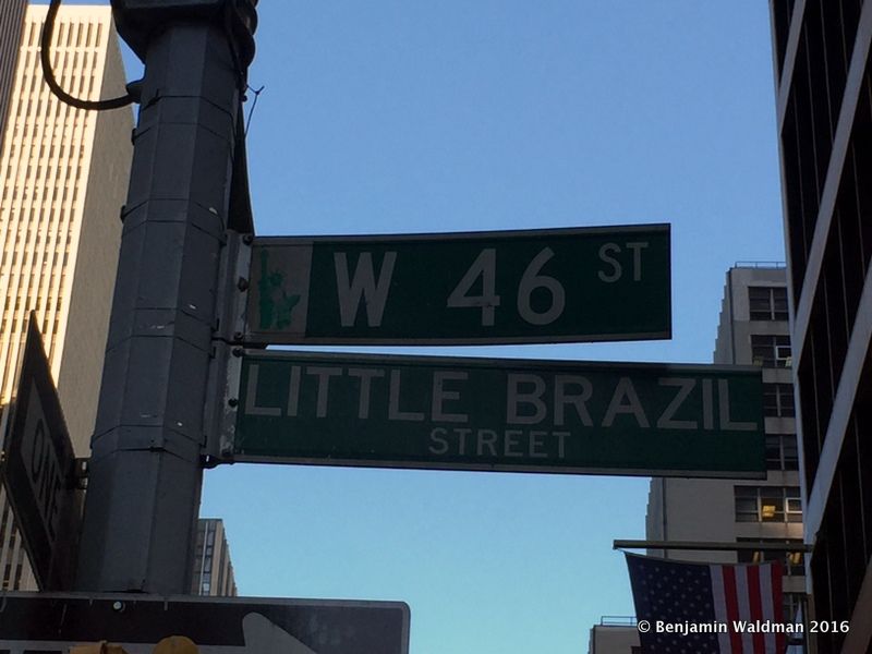 In addition to the statues, one Midtown street was renamed in recognition of the lofty goals of Pan-American friendship espoused by the name, Avenue of the Americas. West 46th Street, situated between Fifth Avenue and the Avenue of the Americas was renamed Little Brazil Street in 1996. The street was renamed in honor of more than 500,000 Brazilian immigrants living in the United States, close to a fifth of which live in New York City. At the time, there were numerous Brazilian establishments located along the block. Today, with the exception of Brazilian Day on September 4th, few remnants remain of the street’s vibrant Brazilian past.