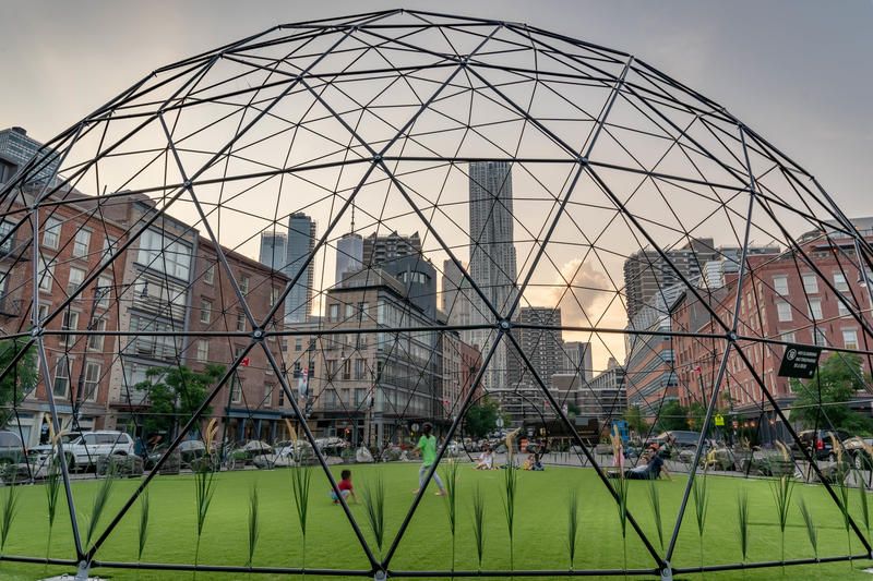 Gaze up at a sky of (artificial) constellations on a bed of (artificial) grass under dusk.space in Peck Slip. This outdoor art installation made up of a turf floor and a giant steel dome dotted with LED lights, is intended to simulate the feeling of laying in a country field. You can even listen to the sound of crickets to enhance your experience, through the installation’s website. This is the first public artwork to be displayed in Peck Slip and was made possible by the NYC Parks Department’s Art in the Parks Program and the Old Seaport Alliance.