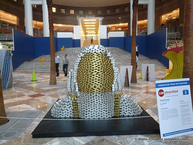 Arts Brookfield is once again hosting Canstruction for the 22nd Annual NYC Competition in the Winter Garden and in the lobby of 250 Vesey Street, what they call “the world’s most imaginative food charity.” Large sculptures entirely of canned foods made for the competition will be on display from November 6 – November 20, 2014 at Brookfield Place. Ranging from witty to endearing, each entry has been thought out and planned by designers who truly care about the food donations that the event supports.