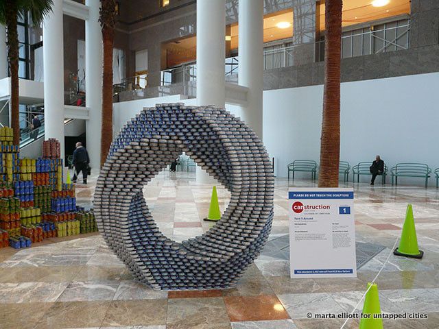 Admission to view the entries is free, but visitors are highly encouraged to donate canned foods. They are asking for high-quality, non-perishable cans of food. These donations and the cans used in the design competition will be donated to City Harvest to feed the hungry New Yorkers. Around City Harvest and Canstruction strategically pair up around Thanksgiving time to donate in time for the holidays to 500+ soup kitchens and community food pantries throughout the city.
