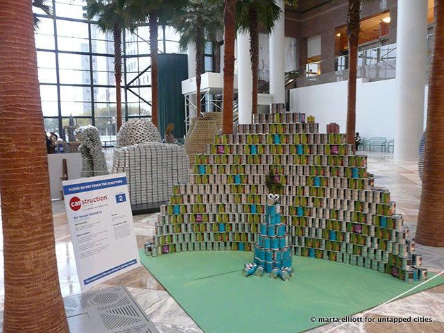 Since 1992, design teams from architecture firms, civic associations, and engineering design firms (with help from the students that they mentor) have been building structures out of food cans. This year, 30 NYC teams have spent months designing their canned food creations and had one night to assemble them before the competition’s opening on November 6th. The competition’s categories include Best Use of Labels, Best Meal, Structural Ingenuity, Most Cans, and Jurors’ Favorite. The winners will be chosen by a jury comprised of architects, design professionals, and culinary gurus but there is also a People’s Choice Award on which the public can vote via Facebook.