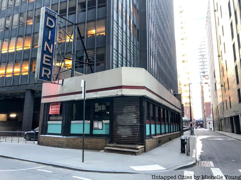 Pearl Diner, located on 212 Pearl Street in the Financial District, looks vastly out of place next to the buildings around it. The tiny stand-alone diner has been around since the early 1960s and still serves affordable breakfast specials, burgers and homemade soup. Although it did close down for a bit after Hurricane Sandy, Pearl Diner remains a local favorite, complete with its iconic neon signage and metal bar stools. Even as the office building behind it went up in the early 1970’s, it still claimed its spot on the corner of Pearl and Fletcher Street.