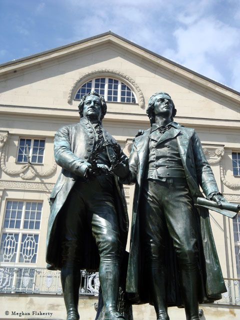Goethe and Schiller in front of the Deutsche Nationaltheater and Staatskapelle (Weimar Theaterplatz)