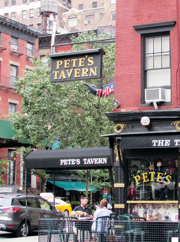 Cabe writes that even though famed author O. Henry died in 1910, “more than a century later, he still occupies his favorite booth here (in Pete’s Tavern),” though it was called Healy’s until Pete Bell bought it in 1932. Today, Pete’s Tavern retains many of its original decor since its opening in 1864 including its “peach-and-robin’s-egg-blue tile floor” and “time-worn wooden cash register.”