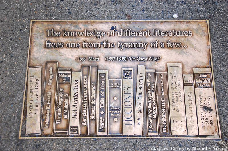 Walking down 41st Street towards the Stephen A. Schwarzman Building of the New York Public Library, pedestrians can get a sample of the literary treasures that await them before entering the building. The two blocks between Park and 5th Avenue, dubbed Library Way, are lined with 32 intricately designed bronze plaques emblazoned with quotes from literary giants like Emily Dickinson,, Gertrude Stein, William Butler Yeats, and Ernest Hemingway. The quotations were selected in 1996 by a distinguished panel of literary experts and librarians who chose excerpts from some of literature’s most prominent works that best represented the importance and impact of literature.