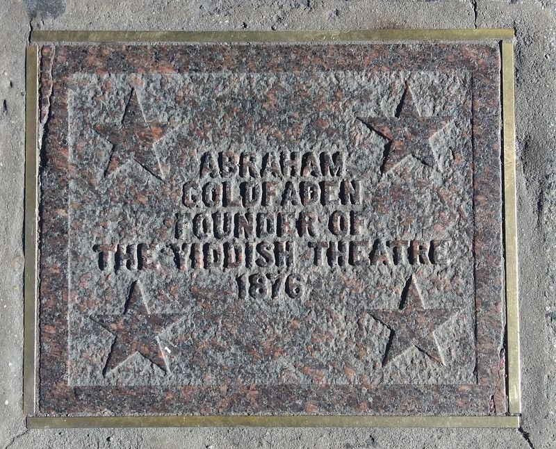 In the early 20th Century Second Avenue in the Lower East Side used to be known as "Yiddish Broadway." The area was rife with theaters that put on all kinds of plays in Yiddish. To keep that history alive Second Avenue Deli owner Abe Lebewohl installed the Yiddish Theatre Walk of Fame in 1984 on the sidewalk in front of his deli. Lebewohl's walk is made up of two rows of granite stars that feature the names of icons of the "Jewish Rialto" including Molly Picon, the Thomashevskys, The Barry Sisters, Fyvush Finkel, Moishe Oysher, Joseph Rumshinsky, Maurice Schwartz, 32 stars in all. The walk of fame is located down the block from one of the few physical remnants of this area's thriving Yiddish art scene, the Jaffe Yiddish Arts Theater, now Village East Cinema.