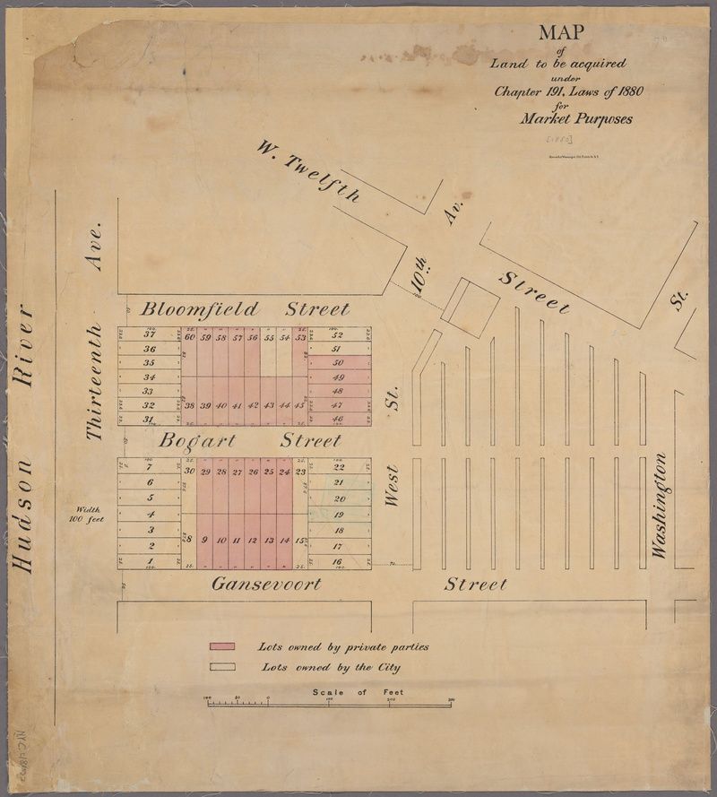 At its longest, 13th Avenue ran from Bloomfield Street all the way up to 23rd Street. It was originally built atop landfill in the 1830s as an access road to the shipping piers, ferry terminals, and dumping grounds along the river, according to Ephemeral New York. In 1886, the New York Times called 13th Ave “a strange thoroughfare,” and “one of the city’s little known streets.” The reporter goes on to describe it as “crude and unmade.”