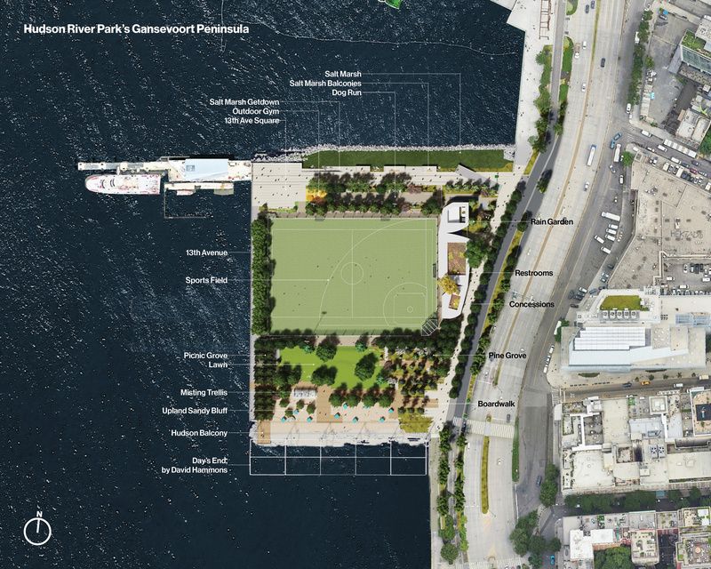 Manhattanites no longer need to hop on a train or drive to get to the beach. Gansevoort Peninsula, a new 5.5 acre oasis in Hudson River Park, now provides New Yorkers with sandy waterfront access to the Hudson River in Manhattan. The $73 million park designed by Field Operations sits on land with a rich history, including a piece of Manhattan’s lost 13th Avenue.