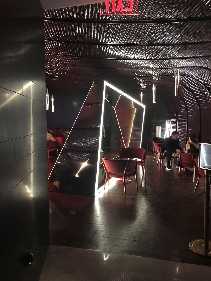 The Standard, High Line — the hotel that previously brought us installations like the felt bodega and the phone booth with a direct line to the government — has now partnered with EVERYBODYNEEDSUS for a new art installation, called Double Double. Displayed in the Living Room lobby, the multi-faceted mirror and neon ribbon installation amplifies and plays with the concept of reflections — something our technology-inundated culture is seemingly obsessed with.