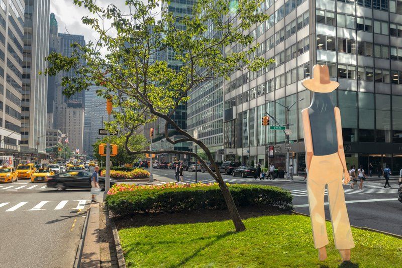 Park Avenue Departure by Alex Katz is a series of seven colorful, cut-out sculptures that, at first glance, resemble the backs of passersby that you might see while strolling down the street. But the works appear differently to the observer from different vantage points, adding an extra level of perceptive depth, similar to an optical illusion. With 200 solo exhibitions and 500 group exhibits under his belt, including appearances at the Whitney, the Brooklyn Museum of Art, the Jewish Museum, and the Guggenheim, Katz’s work has become a New York classic.