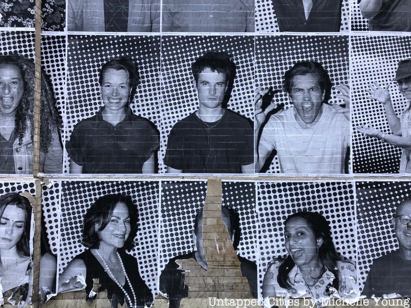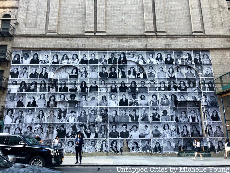 At the back of the Hudson Theater in Times Square, you will find a recent work from JR in his signature black and white “Inside Out” project style that features some well-known faces: Jake Gyllenhaal and Tom Sturridge, both of whom are starring in the play “Sea Wall/A Life.” In fact, the JR did a piece there because Gyllenhaal personally asked him to, as Frances Doods of Architectural Digest reports, and the stars of the show helped paste the work up which has over 100 faces.