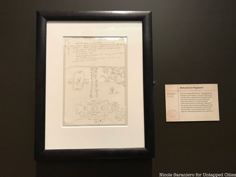 Along with Rowling’s drawings, there are multiple pieces of writing and outlines she created while putting the books together which give visitors a peek into to her creative process. Rowling worked in different mediums as she wrote so there are examples of typewritten and handwritten pages. Documents featured in the exhibition also include a letter from her editor on the subject of changing the title of the first book from Harry Potter and the Philosopher’s Stone to Harry Potter and the Sorcerer’s Stone, for the U.S. publication.