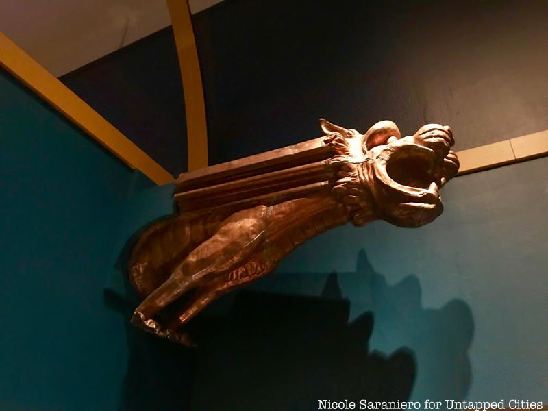 New York City is the setting of the first film in the Harry Potter spin-off movie franchise Fantastic Beasts, and you will find one in the exhibition. This chimera, a fire breathing monster with a lion’s head, was one of eight figures that once loomed over Times Square from the 24th floor observatory of the Times Tower. Next to this figure in the exhibition is a drawing by architect Cass Gilbert of the Woolworth Building, a structure decked inside and out with gargoyles and grotesques of all kinds. The Woolworth also serves as the setting for the Magical Congress of the United States in the Fantastic Beasts films.