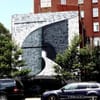 Artist known as #ArtOfBust mural on the wall of ABC school at 126th Street and Park Avenue