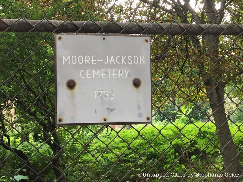 Right off the bat, one of the most unexpected places in Woodside is the surviving colonial burial ground, the Moore Jackson Cemetery. Discreetly hidden at at 31-30 to 31-36 54th Street, this cemetery is one of New York City’s oldest and smallest, with just 15 remaining headstones. Some of the surnames on the headstones include Moore, Jackson, Fish, Rapelye, Hallet, Mecke, and Berrian. The most well-preserved of the tombstones is that of Augustine Moore, who died in 1769.