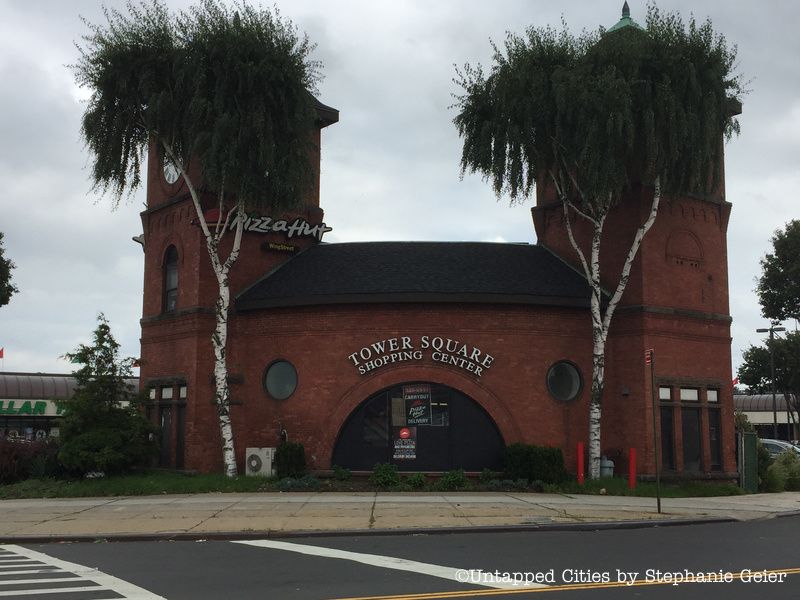How many people can say they ate pizza in a former trolley barn? Well now, you can, if you head over to the Tower Square Shopping Center. While it now looks like your typical shopping center, home to a Starbucks, Pizza Hut, Michael’s Art Supplies, and more, the shopping center was actually a 19th century trolley terminal! You can still see evidence of this former transportation hub from the inscription remaining on its facade, subtly reading “NY AND QUEENS CO., RYI CO” and “WAITING ROOM.”