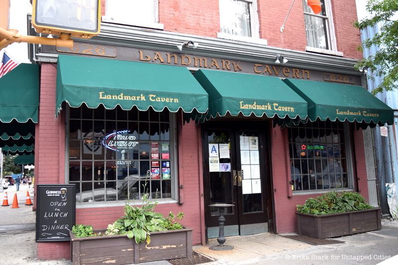 The Landmark Tavern at 626 11th Ave. has been in operation since its opening in 1868, making it one of New York City’s oldest operating bars. Patrick Henry Carley first opened his Irish saloon on the shore of the Hudson River, as 12th Avenue did not exist yet. He provided enough space in the establishment for his family to live comfortably on the second and third floors of the building. It was on this third floor that The Landmark Tavern moved its operation during the Prohibition era and continued to run its bar illegally as a speakeasy.