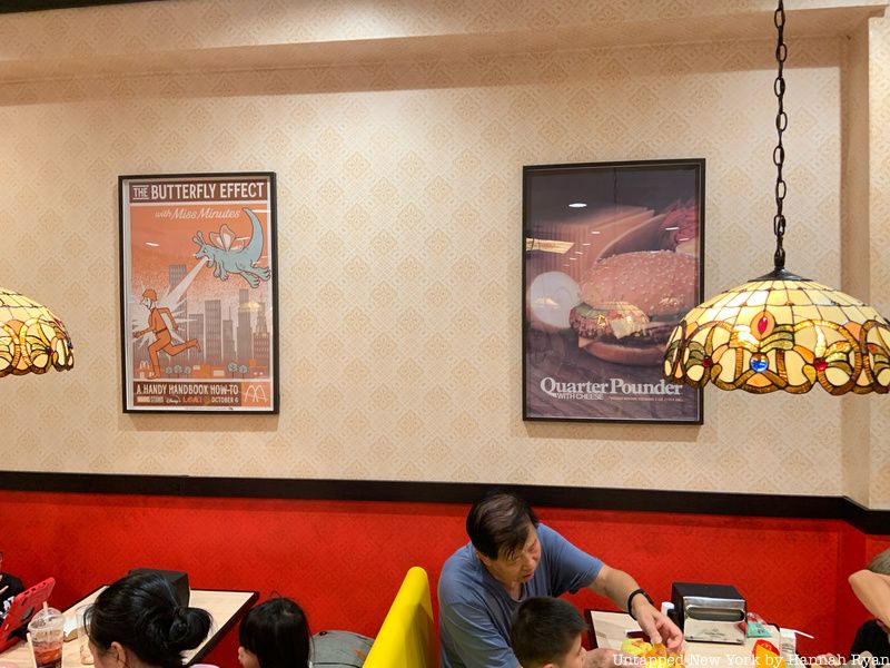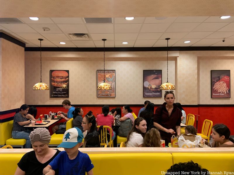 Stepping into the McDonald’s at 6620 Bay Parkway in Bensonhurst today feels like stepping into the past. Vintage Tiffany-style lights hang from the ceiling, retro ads deck the walls, and classic characters are displayed in large-than-life murals. This 1980s pop-up is only open until midnight on Friday, September 1st, and we went inside!