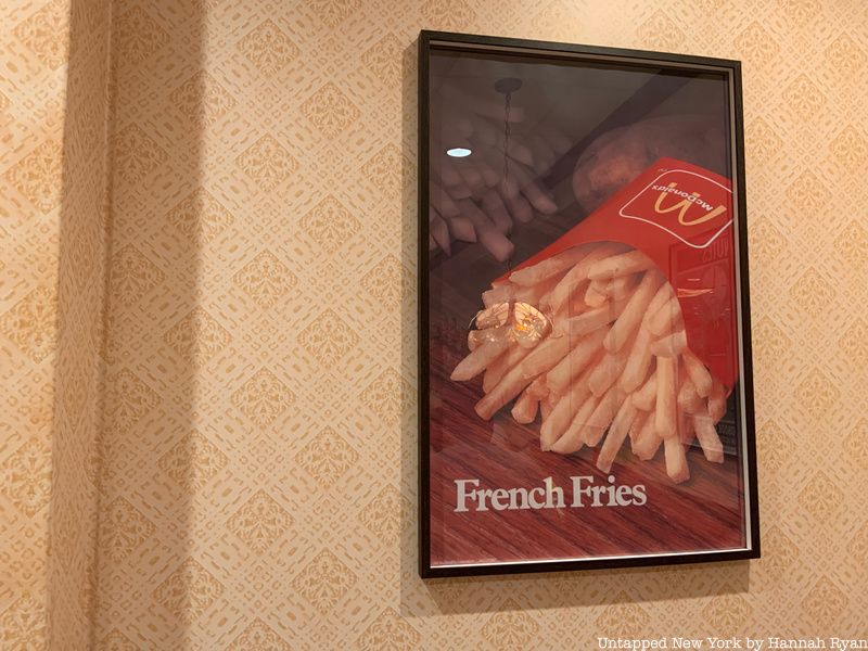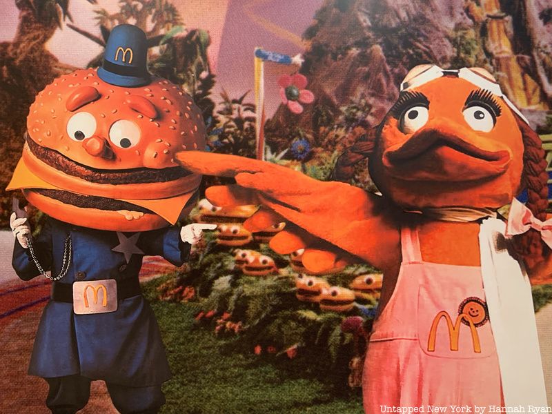 At the pop-up event, there are props and costumes from the show on display and the restaurant is filled with 1980s McDonald’s nostalgia. Everything from the yellow-colored booths to the vintage cash registers fit the time period. There are giant murals that feature vintage versions of McDonald’s characters like Officer Big Mac and Birdie the Early Bird and a large detail of the Hamburger Patch where tiny hamburgers grow.
