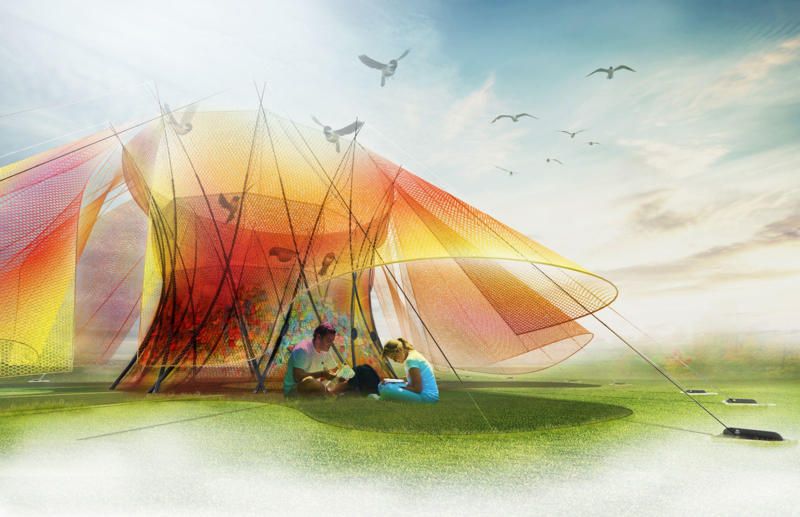 This year’s finalists include the Color Waves Pavilion (Shujie Chen, Xiao Tong, Ning Wang, Yifeng Wang, Yifeng Wu, Bowen Zhang Assoc. AIA, Matthew Streeter, Jingwen Wang, and Sam Wilson), Follicle (Deborah Lopez, Hadin Charbel, Mika Portguaise, Francisco Prada López, and Anders Rod), the Rainbow Pavilion (Christophe Cormy Donat), Mossgrove (Sam Biroscak in collaboration with Gina Dyches, Stephanie Borchers, Annick Lang, and Anneli Rice). You can learn more about each proposal here.