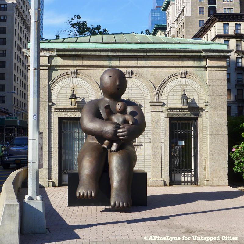The sculpture entitled, One Holding Small One, on Broadway and 96th Street in front of the West Side Arts Coalition