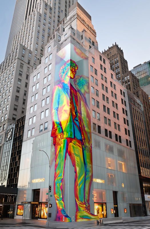 In celebration of Virgil Abloh’s debut collection as Men’s Artistic Director for Louis Vuitton, the Fifth Avenue store now has on display a 12-story piece of art! The oversized figure stands inside the store creating an optical illusion that extends onto the street and throughout the store. Abloh’s collection drew inspiration from the classic 1939 film “The Wizard of Oz.” The window installations the accompany the giant art piece draw on the same aesthetic themes with technicolor skies, fields of flowers and the yellow brick road. There is also a short residency inside Chrome Hearts in the West Village which will feature a range of tailored to casual ready to wear pieces, shoes, leather goods and multi-colored accessories from Abloh’s debut collection in an exclusively designed and conceptual space.