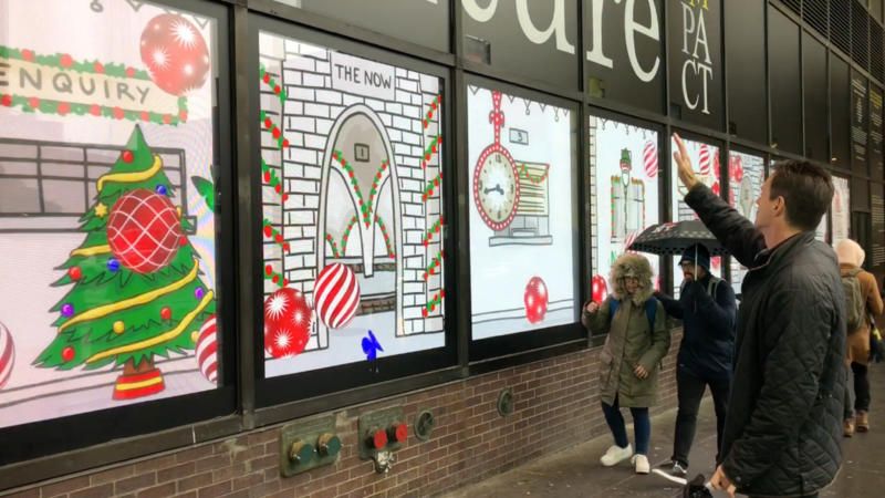 The Now – Holiday Special is an outdoor interactive video public art installation that has been extended into the New Year. Stretching seventy-two feet long on the windows of the Port Authority Bus Terminal in Times Square, it is the world’s largest interactive public art installation! The installation is comprised of video art, animation, video mapping and interactivity created by talented filmmakers and video artists Laia Cabrera and Isabelle Duverger, with interactivity by NoirFlux and Karan Parikh. The special holiday edition of The Now offers “a journey into magical worlds, intertwining reality and fantasy, opening doors to hidden places and participatory environments, with a holiday Twist.” Visitors who interact with the piece by walking and moving will unravel different storylines. The installation will be up until January 16th.