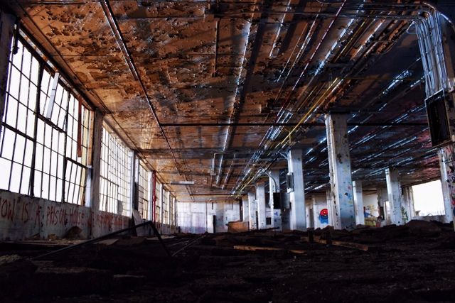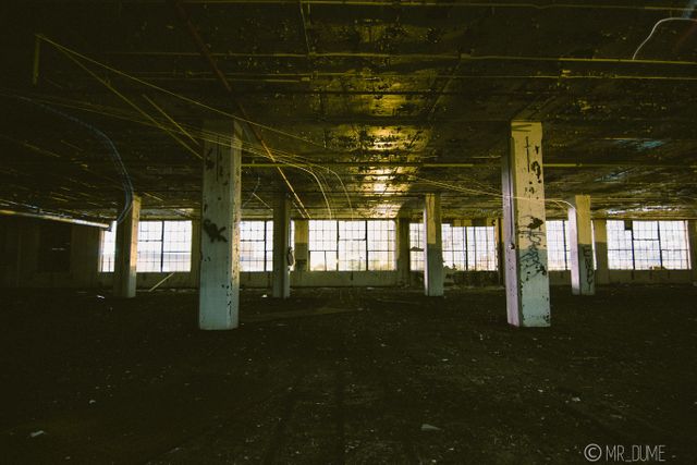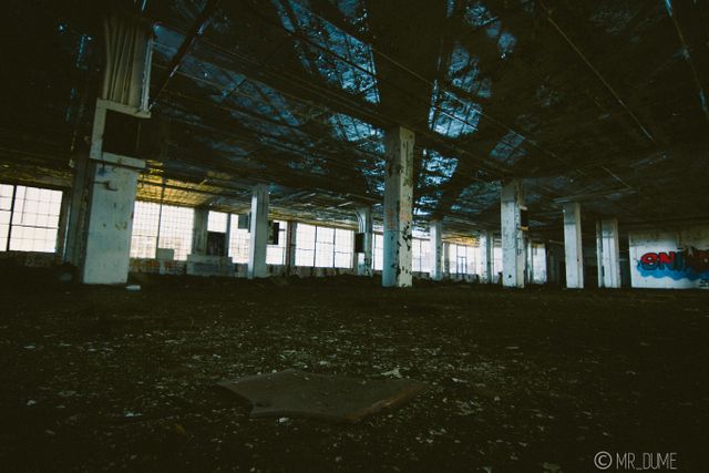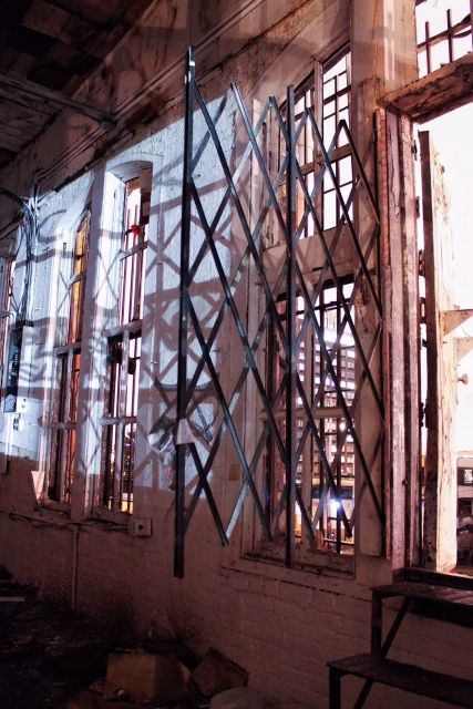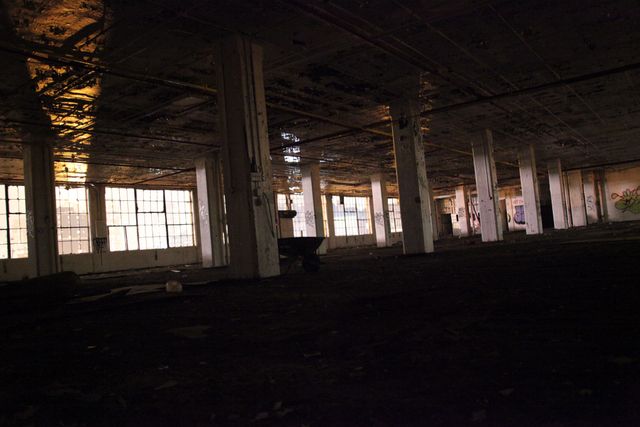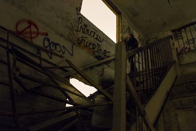 Inside, cinderblocks jammed the staircases from being thrown into the windows. Exposed nails creep up through debris-filled floors and weak wooden floorboards show the long period of decay and abandonment.