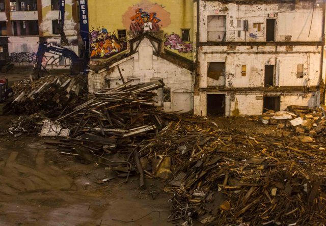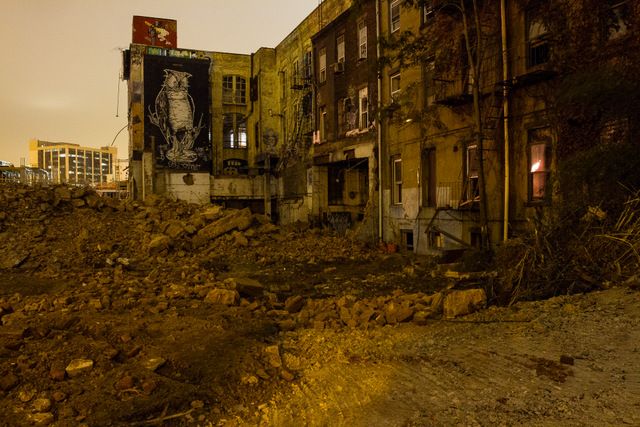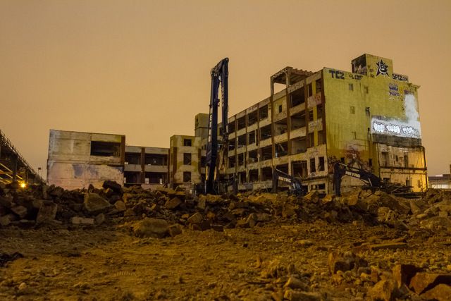 The last time we heard from urban explorer __Macgyver and his crew, they were creating pyrotechnic fire art in New York City’s abandoned subway stations. This time, they’ve hit up the demolition at the beloved street art haven, 5Pointz which was whitewashed last year. In an evening raid, __Macgyver, Mr_Dume, Jenyc_photography, _Fabricios_, franklyfrank and thompsonlxs_ capture what they describe to us as “a last hoorah” for 5Pointz. According to __Macgyver, 5Pointz “literally looked like it was blown away by a tornado.” Yet some of the street art was still intact. With a central building already down and the rest prepared for the wrecking ball, it is likely that 5Pointz will come down imminently.