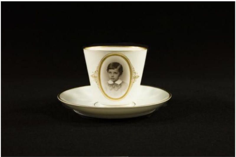 One of the most unique items found in the archives of the Center for Jewish History is a pair of hot chocolate cups that belonged to the infamous mathematician Albert Einstein and his sister Maja. The tiny porcelain cups are emblazoned with a portrait of each child in a decorative gold leaf frame. The lip, handle and foot of the cups as well as the rims of the saucers are also ringed with gold leaf. The bases of the cups are stamped with the Wittelsbach coat of arms and the mark of the manufacturer, The Nymphenburg Porcelain Manufactory. The set of cups was presumably commissioned by the siblings’ parents shortly after the birth of Maja in the early 1880s, while the family was living in Munich. Einstein took the cups with him when he immigrated to the Untied States and kept them in his home in Princeton, New Jersey. Several years after Einstein’s death, his personal assistant Helen Dukas donated the cups to the Leo Baeck Institute.