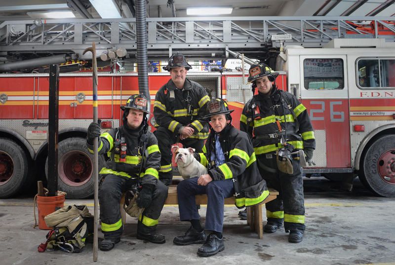 Fire dogs were traditionally employed by firehouses as companions for the fire horses, but when fire horses went away (replaced by firetrucks), the dogs stayed. At Engine Company 58 Ladder 26, a firehouse on 5th avenue just above Central Park nicknamed the Fire Factory after a surge of arsons that occurred in the nearby areas of Harlem and the Bronx in the 1960s, their fire house dog is a bulldog named Riggs. Riggs is not the first bulldog this firehouse has adopted. The wrinkly faced dog has become their mascot and can be seen emblazoned on flags, signs, and even a stained glass window. Riggs, who is just a puppy yet, was a gift from one of the firefighters in the company. You can usually find him in his bed in the corner of the command center watching the fire firefighters come and go.