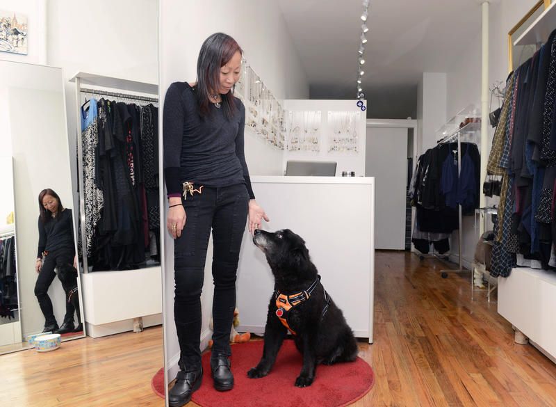 Shin started out as a cat person. When she opened her first store in the East Village her companion was BooBoo. Then one day, a puppy in a window caught her eye and they formed an instant connection. Pepper joined the family and became Shin’s new shop dog, happily greeting customers at the door of her Chelsea storefront. Pepper was by Shin’s side through many changes in her business, home life, and the world at large over the years. It took a long time for Shin to get over the loss of Pepper, but in 2012 she adopted Rocket, a chow-mix who easily adjusted to the shop dog life. Shin says that walking her dogs helped her notice all of the changes occurring in the city around her. One of her favorite spots to walk to with Rocket, who sadly passed away earlier this year, was the Elizabeth Street Garden, and she hopes that the changes affecting the city today don’t lead to the loss of this special place.