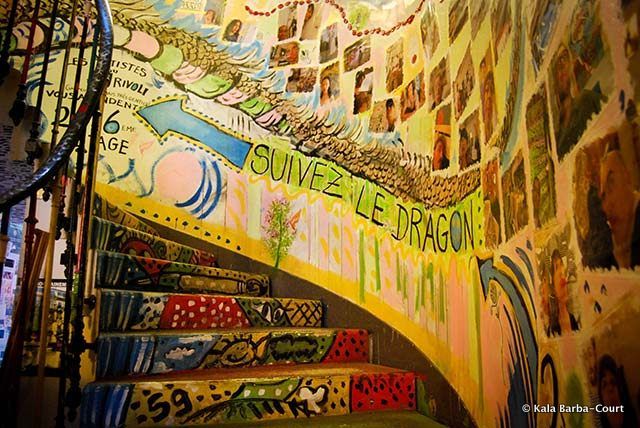 The walk-in, open-house 59 Rivoli is a stand-out along rue de Rivoli with its brightly painted façade and banners hanging from its balconies. The Hausmannian building, which used to house a Credit Lyonnais branch, had been boarded up for almost a decade until the KGB (a group of artists named Kalex, Gaspard and Bruno) decided to occupy it and turn it into a creative space for artists. The formed group then called themselves “Chez Robert Electron Libre”. Exhibitions, show openings, and concerts, attracted fellow artists and curious attendees, and a merry time was had by all as word of this unconventional place spread. The French state was less enthusiastic, though, and made a complaint against the artists. 59 Rivoli lived under the threat of eviction until the present mayor of Paris, Bertrand Delanoà«, stepped into the picture. The City of Paris purchased the building, and after several years of being closed for renovations, 59 Rivoli reopened to the public in 2009.