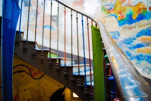 Finally the door opened, and a woman welcomed us, apologizing for the delay. “It’s cold, it’s winter, so nice in bed, you know how it is,” she said ruefully, shooing us up the stairway, which was covered in murals. “Go on and have a great time! Say hello to the artists!”