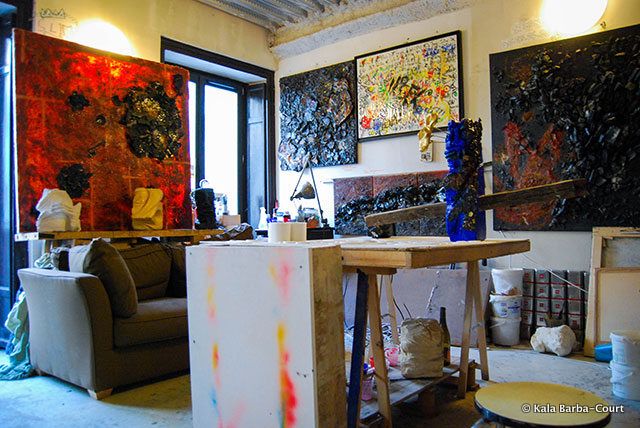 Thirty artists are housed at 59 Rivoli (20 are permanent artists and there are 10 slots for artist residencies), and they pay a modest sum for rent. I made my way from floor to floor, each room transporting me back to art school. The smell of linseed oil, the canvases propped up against the walls, the paint-splattered chairs, and the unfinished sketches lying on tables or taped to the walls reminded me of how important an artist’s space is, how wonderful it must be for them to create art in such a gorgeous building, and how lucky Parisians are to have been given a portal to the contemporary art world.