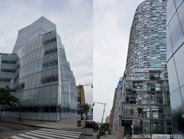There are two glass buildings facing each other near David Zwirner Gallery on 20th Street. The first, using a continuous curved glass pattern, was designed by Frank Gehry, a noted architect whose works appear around the world. The other, using a mosaic glass pattern, was designed by Jean Nouvel, a French architect. The rumor surrounding the two buildings is that Nouvel, who shared a contentious and often ugly rivalry with Gehry, built his mosaic pattern building directly opposite Gehry’s building so that any photograph taken of Gehry’s design would feature Nouvel’s building in its reflection, regardless of the angle. To add insult to injury, Nouvel’s building is built in such away that it does not reflect Gehry’s building. Sure enough, any photographs of the Gehry building, now the headquarters of the internet company InterActiveCorp, have the reflection of Nouvel’s building, now a residential tower, edited out.