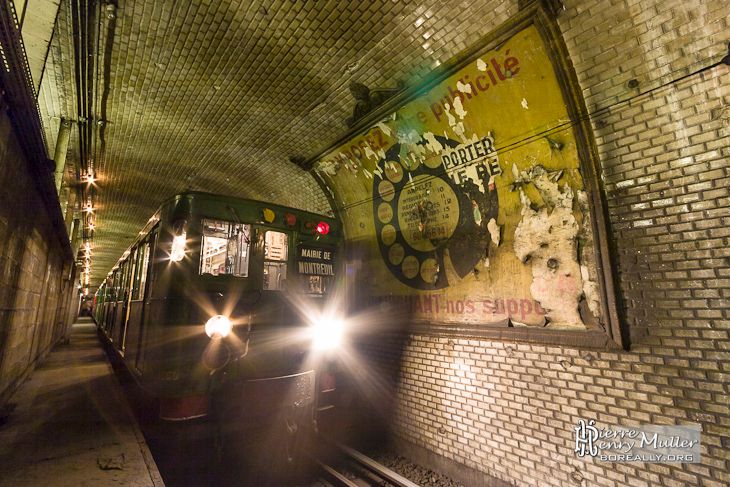 Saint Martin was also closed in 1939 as World War II loomed. It opened briefly after the Liberation but was then permanently closed. Photos inside the Saint-Martin station, situated along Grand Boulevards, show vintage ads from the 1930s.