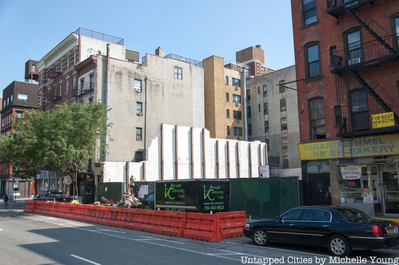 A month ago, Bowery Boogie reported on the on-going demolition of the former Sunshine Cinema, at 141 Houston Street between Forsyth and Eldridge streets, next to Lower East Side institution, Yonah Schimmel’s Knish. Yesterday, Curbed NY reported that the building was completely gone.