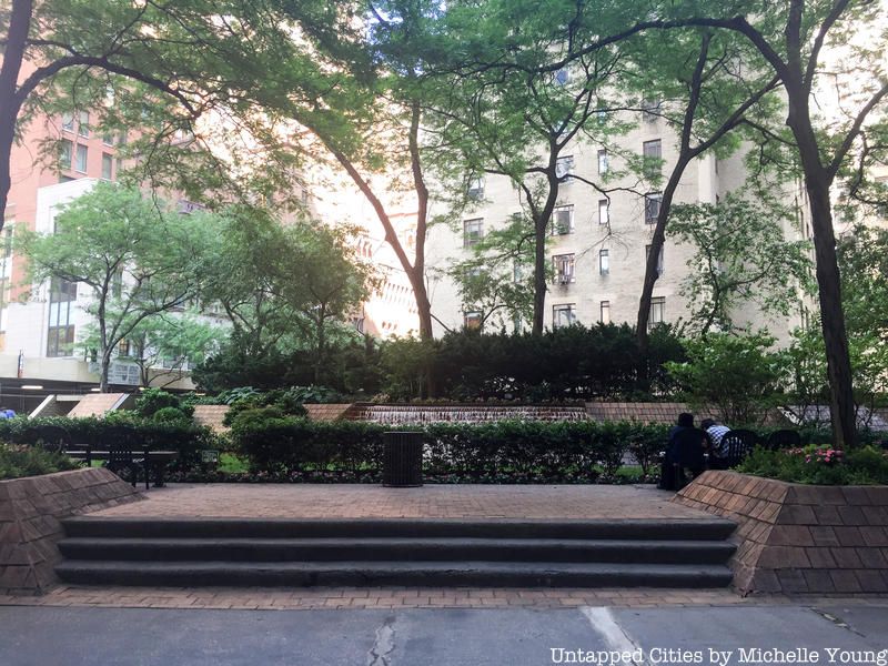 The privately owned public space behind the arcade that contained the entrance to Lincoln Plaza Theater