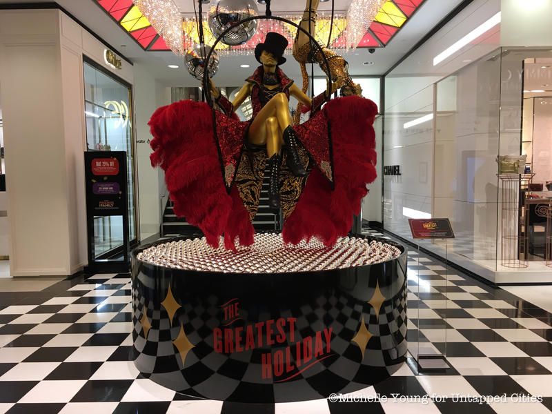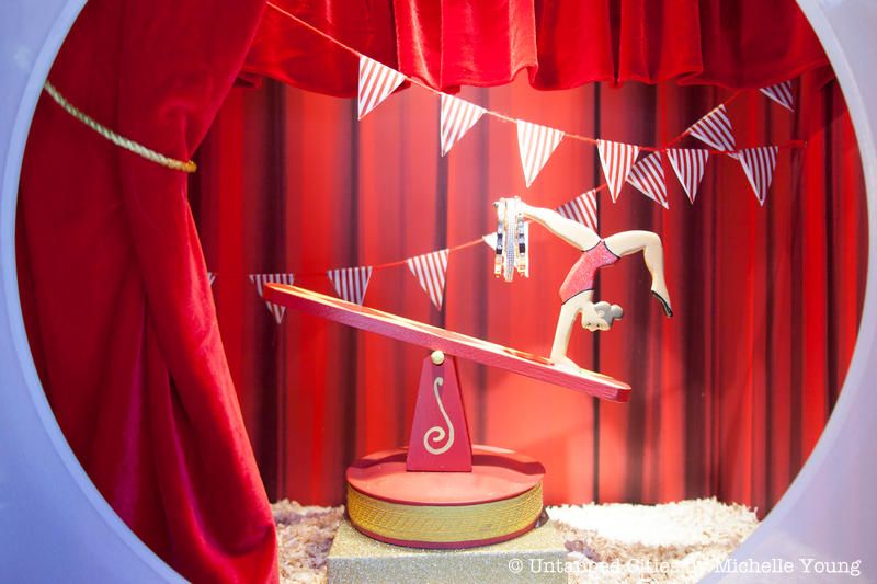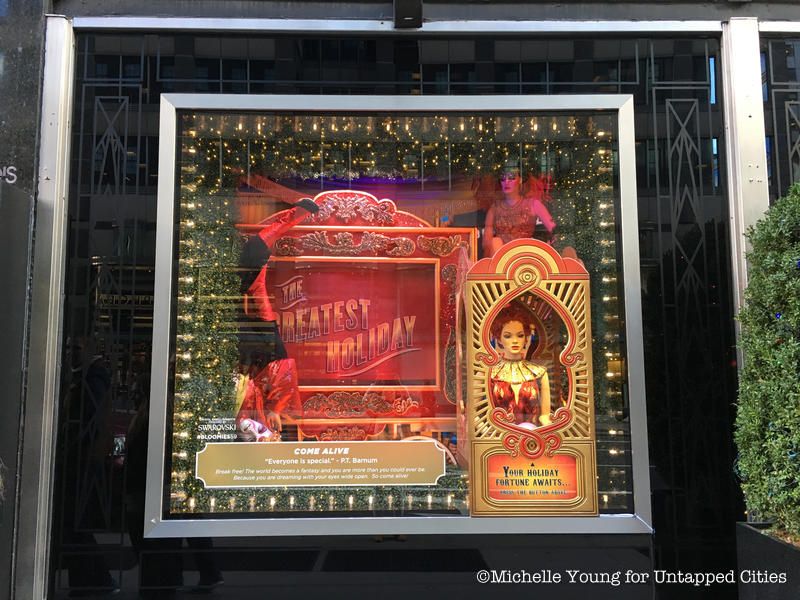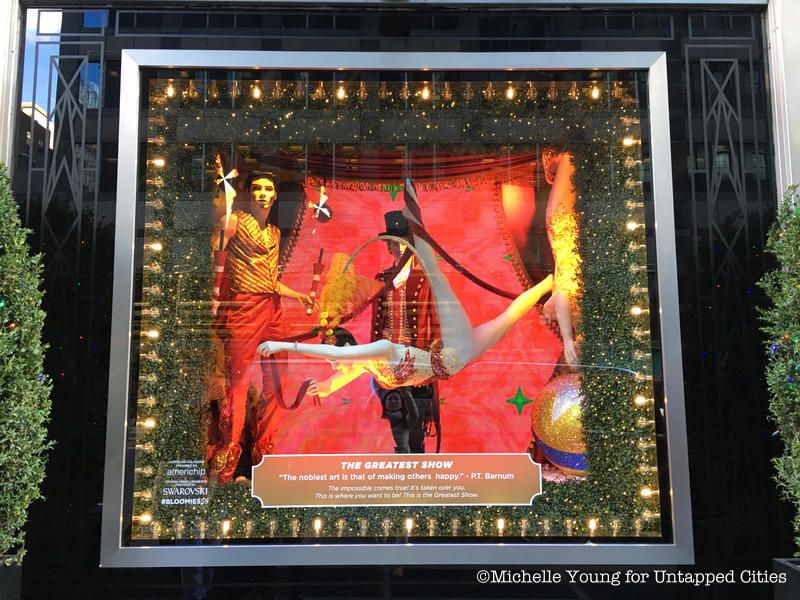 Bloomingdale’s festive display is the result of a partnership with The Greatest Showman, a film based on the true story of how P. T. Barnum. As such, you can expect to find circus inspired presentations with mannequins wearing dazzling, elaborate outfits.