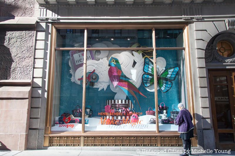 This year, Henri Bendel partnered with Lovepop, a Boston-based startup that specializes in 3D paper structures, to create its colorful windows. In a tribute to fearless creators, the display includes over 30,000 butterflies and intricate, paper-made flora and fauna. There is also an Instagram wall for those who want to commemorate their visit.
