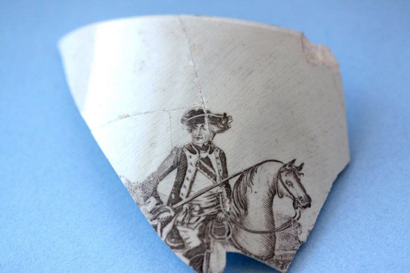 This piece of pearlware was manufactured between 1790 and 1840, depicting George Washington on horseback.