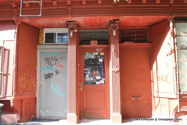 Bill Weinburg, who gives a “Radical Alphabet City” tour from MoRUS, alerted us to the presence of premier Beat Generation poet Allen Ginsberg’s former apartments, which must inevitably be pilgrimage stops for any neo-beatniks. From 1952-53, Ginsberg kept an apartment on the third floor of 206 East 7th Street (pictured above). His lover at the time, William S. Burroughs, shared the apartment with him. After Ginsberg left New York and completed his famously controversial poem “Howl” in San Francisco, he came back to the East Village, this time settling on East 2nd Street for three years with his lifelong partner Peter Orlovsky. Ginsberg remains one of the East Village’s most remembered former residents. A HOWL! Festival is held every June in Tompkins Square Park in celebration of the poem that fueled a censorship case and now is being used as a symbol of the free expression that the East Village is known for embracing.