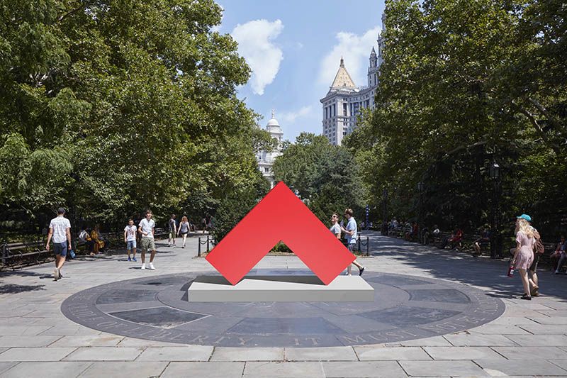 Estructuras Monumentales is an upcoming exhibition composed of five aluminum sculptures. It is designed by Cuban-born, New York based artist Carmen Herrera, and presented by Public Art Fund in celebration of her first major outdoor exhibition of sculptures. These works are to enliven City Hall Park in Lower Manhattan, where three new sculptures based on historic designs and two sculptures never before seen in the United States will be revealed. Herrera’s Estructuras series was originally conceived in the 1960s, and featured bold monochromatic colors that are to complement the civic environment. According to Public Art Fund Associate Curator, Daniel S. Palmer, the series “will harmonize with the natural surroundings of this civic setting – City Hall Park serves as the ideal environment for this important exhibition in Herrera’s long career.” Estructuras Monumentales will be on view from July 11 to November 8, 2019 in Lower Manhattan’s City Hall Park.