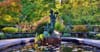 The Frances Hodgson Burnett Memorial Fountain, a sculpture and fountain of a serene garden, was dedicated in the spring of 1937 to Frances Eliza Hodgson Burnett. It was created by sculptor Bessie Potter Vonnoh and inspired by one of Burnett’s most renown books, The Secret Garden. The intimate scene depicted in bronze is of a girl holding a bowl and a boy playing the flute next to her as they are surrounded by swallows. The scene is based on the characters of Mary and Dickon from The Secret Garden. The fountain is located at the southern end of Conservatory Garden in Central Park, between 103rd and 106th streets along the eastern perimeter of Fifth Avenue.