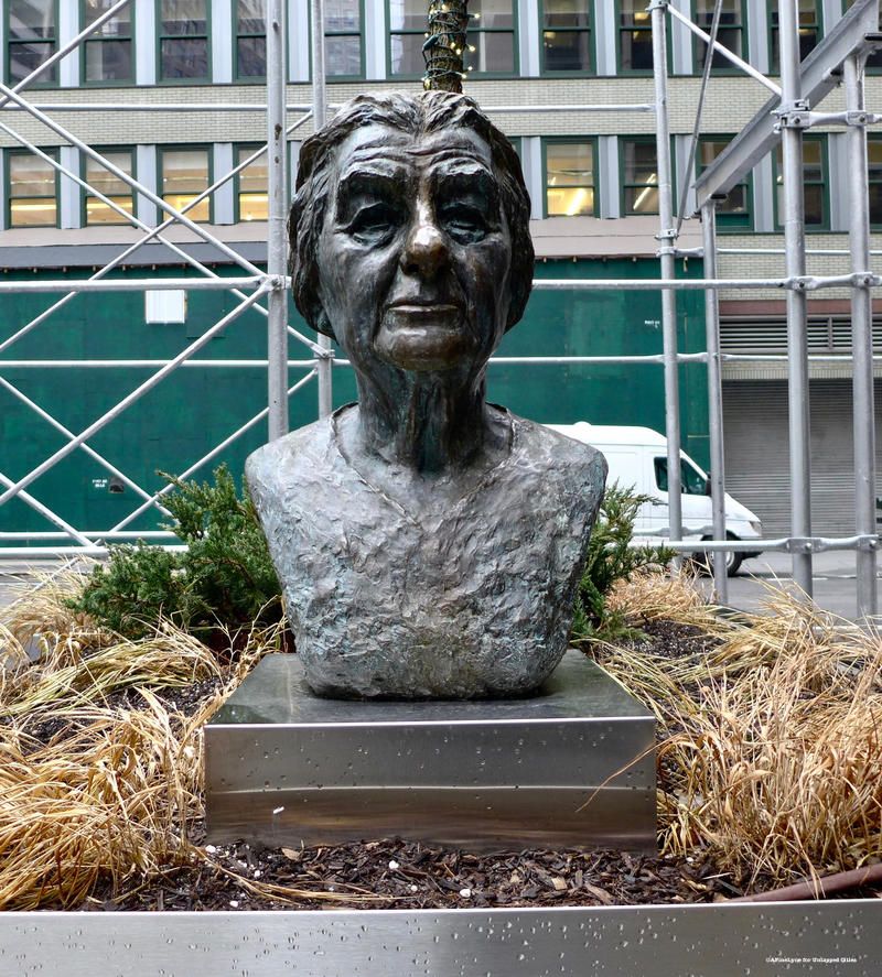 Another recent addition to New York City’s female statuary is the Women’s Rights Pioneers Monument, the first monument in Central Park to ever be dedicated to real women. The statue depicts Sojourner Truth, Elizabeth Cady Stanton, and Susan B. Anthony. It was unveiled in August 2020. Meredith Bergmann was commissioned for the statues designed. Bergmann also designed the bust of Ruth Bader Ginsburg which was recently unveiled at the New York State Capitol building in Albany.