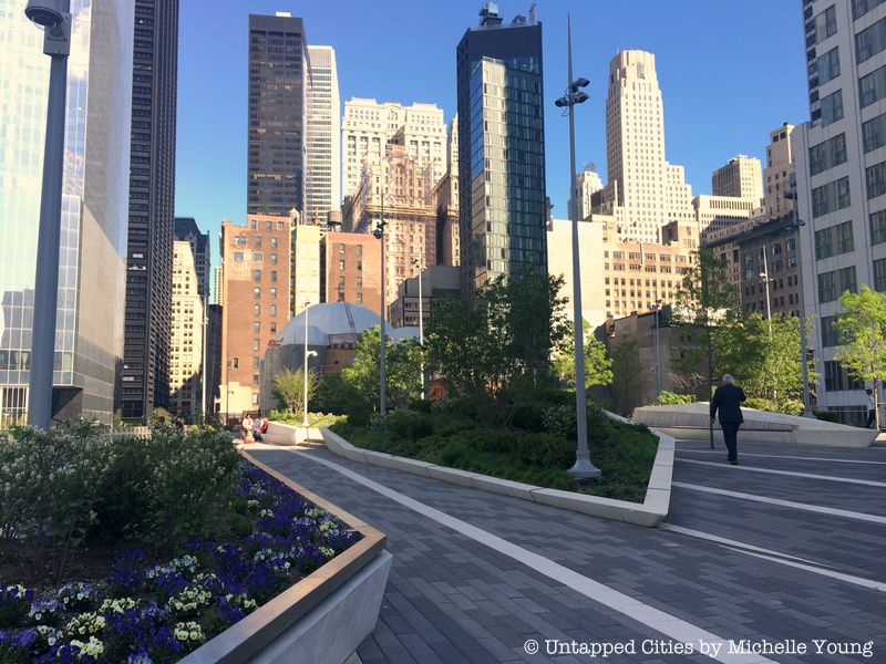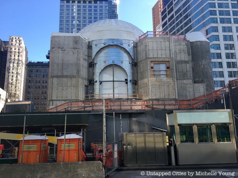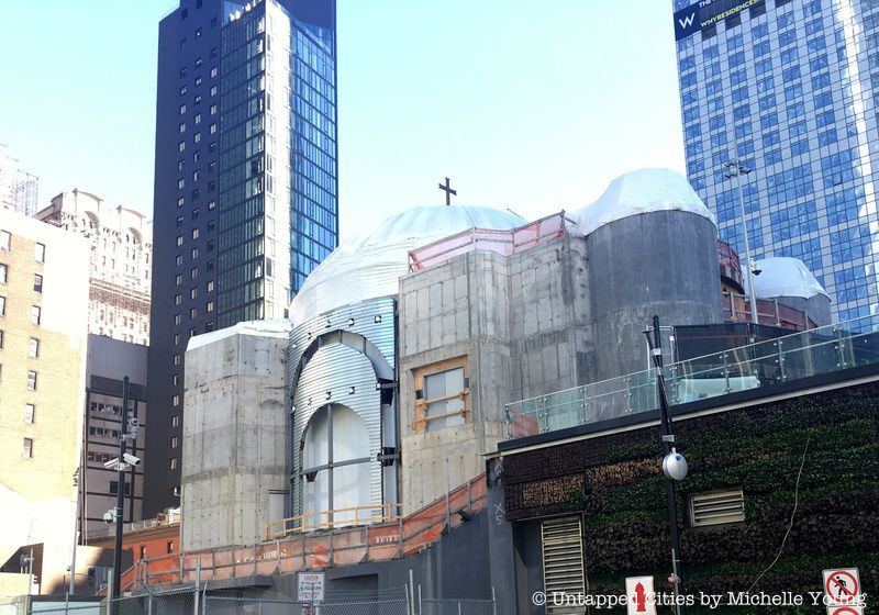 155 Cedar Street is now part of Liberty Park, an elevated park which opened last summer. The location change for St. Nicholas Greek Church was not an easy one, as the New York Times reported: “For years, little progress was made as the Greek Orthodox Archdiocese of America and the Port Authority of New York and New Jersey squabbled over how the church would be compensated for giving up the Cedar Street parcel — and the air rights along with it — which the authority needed to build an underground vehicle security center.” The Port Authority claimed the church was exacting “increasingly costly concessions,” while those affiliated with the church stated that the agency was constantly revising demands on the church.