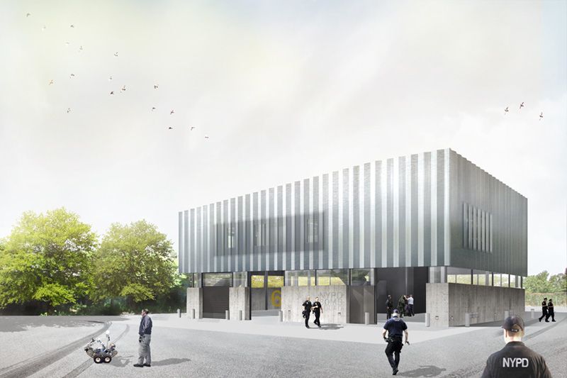 The New York Police Department Bomb Squad Building was commissioned by the Department of Design and Construction and the NYPD after the former training facilities were damaged during Hurricane Sandy. Conceptualized by Rice + Lipka Architects along with Liz Farrell Landscape Architecture, this proposed, 10,700 square-foot project has been designed to elevate “critical program elements” above the floodplain.