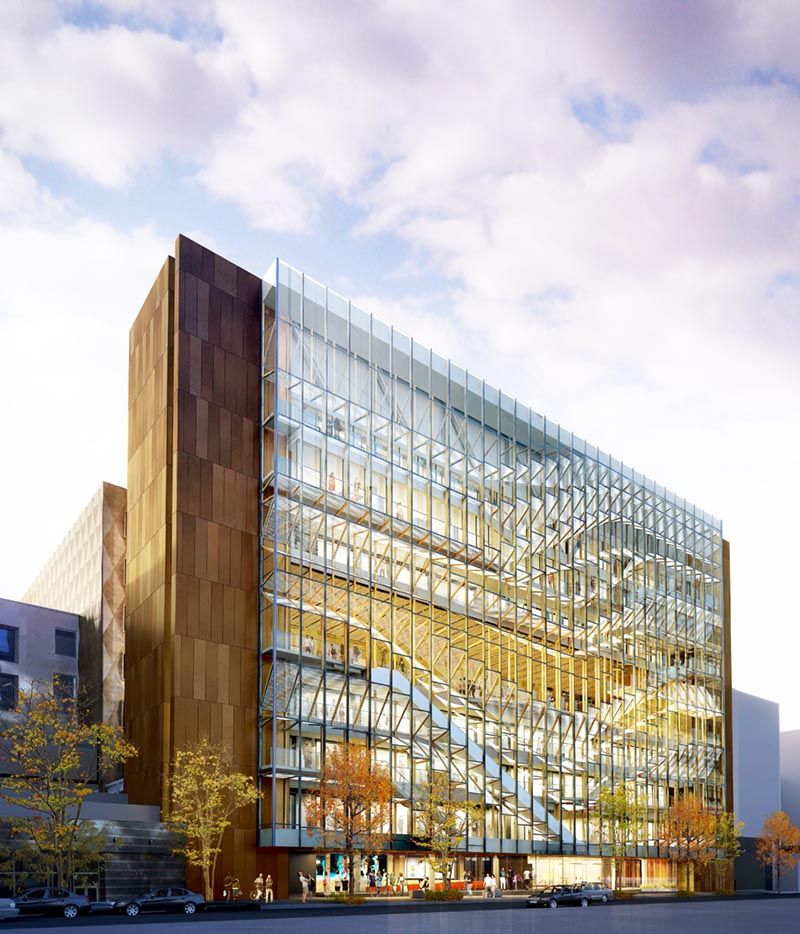 The Fashion Institute of Technology’s New Academic Building — its first constructed building in 50 years — will be located on the northern edge of the campus. The ten-story, 110,000-square-foot structure will house smart classrooms, a textile lab, administrative offices and the first-dedicated student life hall. It will also provide an internal passageway, spanning from 28th Street to 27th Street, that will connect to the adjacent Marvin Feldman Center.